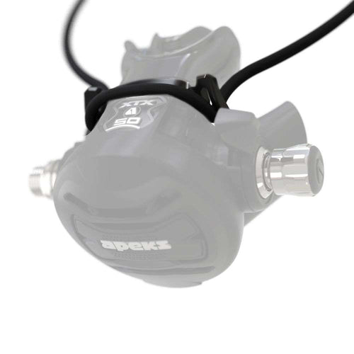 Il sistema di connettori elastici Apeks è stato progettato per offrire una soluzione pratica per riporre l'erogatore di riserva configurandolo in base alle proprie preferenze. Il sistema è inoltre dotato di una funzione di blocco per trattenere l'erogatore in bocca a un subacqueo incosciente durante una situazione di soccorso.